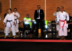 Um 10 Uhr ging ich als erstes mit Kata an den Start und wollte meinen ersten Platz vom letzten Jahr verteidigen. Doch heute hatte ich ein schweres Los gezogen. Da die Kategorien U18 und die Leistungsklasse (Ü18) zusammengelegt worden waren, musste ich gleich in der ersten Runde gegen die siebenfache Nationalmeisterin und Shito Ryu Europameisterin Samantha aus den Niederlanden laufen, welche den Kampf dann auch für sich entscheiden konnte.